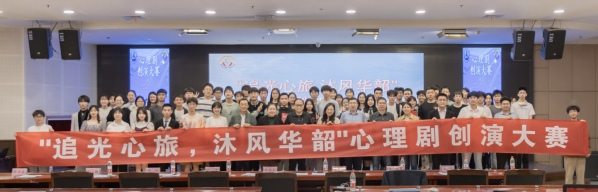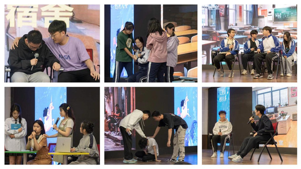 本次心理剧创演大赛全校共26支参赛队参加,历经剧本筛选、初赛、复赛、决赛四个环节,最终六个剧组站上决赛舞台。《敞开心房,你亦是光》中的内向女孩小静在同学的帮助下逐渐认可接纳自己,并收获了温暖的友谊;《我在你的未来》用一个虚实交错的故事提醒我们牢记用法律武器反抗校园霸凌;《救赎》的主人公因为虚荣心深陷网贷深陷泥沼,最终在亲朋好友的爱中幡然醒悟;《像风一样》聚焦“家庭控制”这一话题探讨了孩子如何发展自我的问题;《反方向的钟》和《挂件,“挂”件》以类似童话的形式分别强调了选择和努力的重要意义。