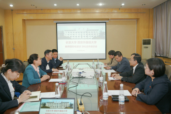 4月14日下午,西安外国语大学副校长赵国华一行来校交流。校党委副书记、副校长彪晓红出席座谈会,人事处、长安都柏林国际交通学院负责人参加会议。