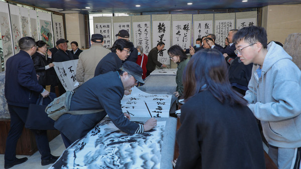 开幕式结束,与会嘉宾和广大统战成员共同参观欣赏了参展的书画作品。部分书画家和书法爱好者现场挥毫泼墨,用书画作品弘扬与党同心、爱国为民、精诚合作、敬业奉献的优良传统,绘就学校高质量发展新篇章。