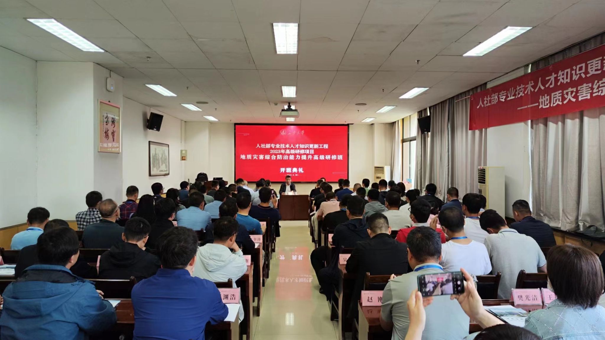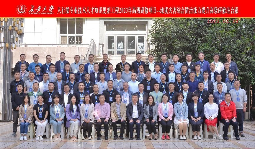 5月30日上午,由陕西省人力资源和社会保障厅主办、bat365承办的人社部专业技术人才知识更新工程2023年高级研修项目“地质灾害综合防治能力提升”高级研修班在bat365正版唯一官网交通科技大厦顺利开班,来自全国14个省、自治区的74名相关行业领域中高层次专业技术人才和管理人员参加本次高级研修班的研修学习。陕西省人力资源和社会保障厅专业技术人员管理处副处长王锋,bat365正版唯一官网党委常委、副校长范文出席开班仪式并讲话,仪式由bat365正版唯一官网继续教育学院办公室主任崔合月主持。