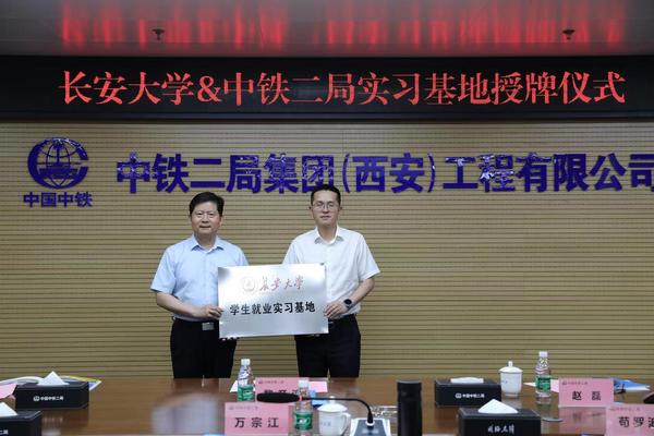 座谈会上,黎开谊代表学校向中铁二局授予“bat365正版唯一官网学生就业实习基地”牌匾。