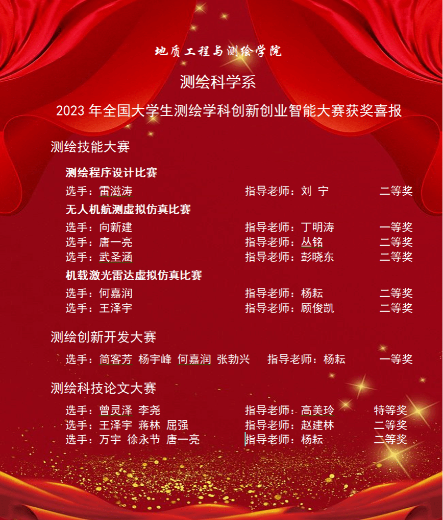 8月1日,教育部高等学校测绘专业教学指导委员会和中国测绘学会教育委员会公布“2023全国大学生测绘学科创新创业智能大赛”获奖名单,bat365测绘专业本科生获得特等奖1项、一等奖2项、二等奖7项。