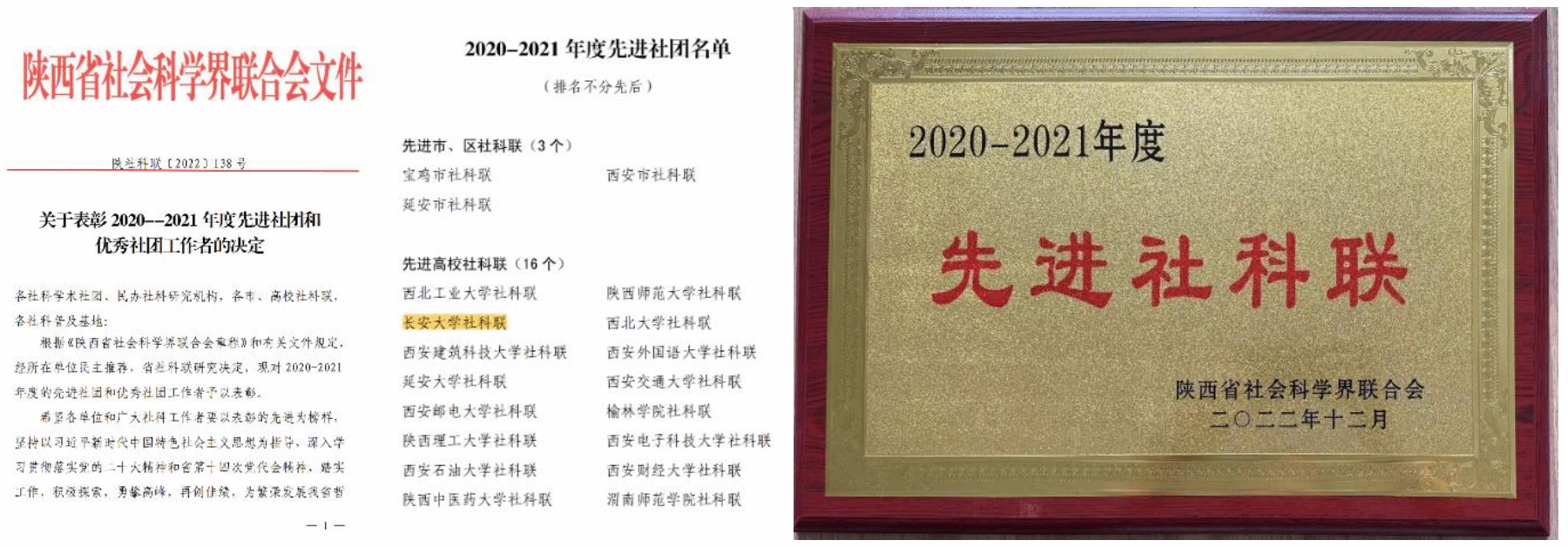 近日,根据陕西省社科联《关于表彰2020-2021年度先进社团和优秀社团工作者的决定》,bat365社科联被授予“2020-2021年度先进社科联”荣誉称号。该表彰每2年评选一次,本次全省共有16所高校荣获表彰。