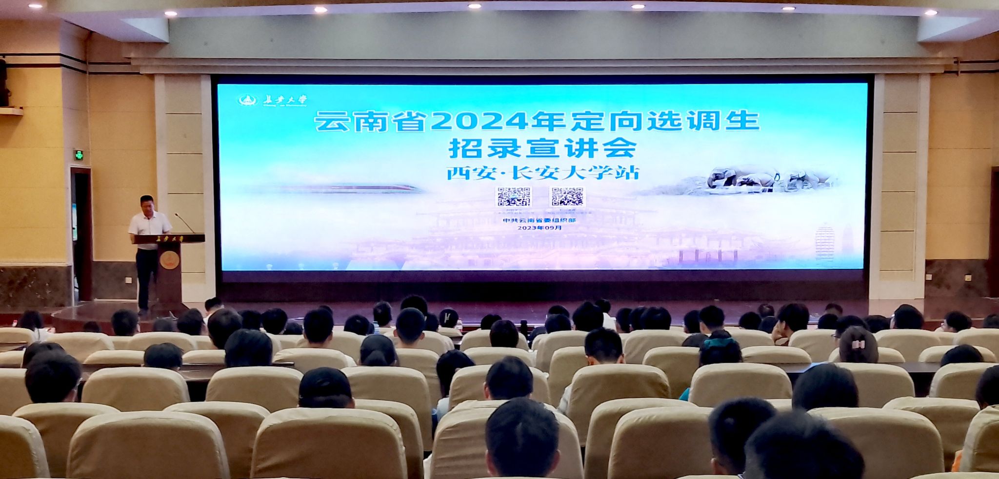 9月13日下午,云南省2024年定向选调生招录宣讲会在南校区学术交流中心报告厅举行。云南省委组织部副部长杨绍虎率省能源局、林草局、迪庆州委组织部相关负责同志以及选调生代表参加了宣讲会。校党委副书记黎开谊出席活动,学校组织部、招就处、经管学院、马克思主义学院等部门负责人及各学院学生代表200余人参会。