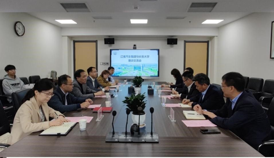 10月12日上午,安徽江淮汽车集团股份有限公司副总经理宋华一行7人来bat365座谈交流。副校长王建伟出席会议,汽车学院院长赵轩,长安都柏林国际交通学院党总支书记赵亮,汽车学院副书记、副院长周姗姗,副书记崔莉,副院长陈轶嵩等参加座谈。座谈会由周姗姗主持。