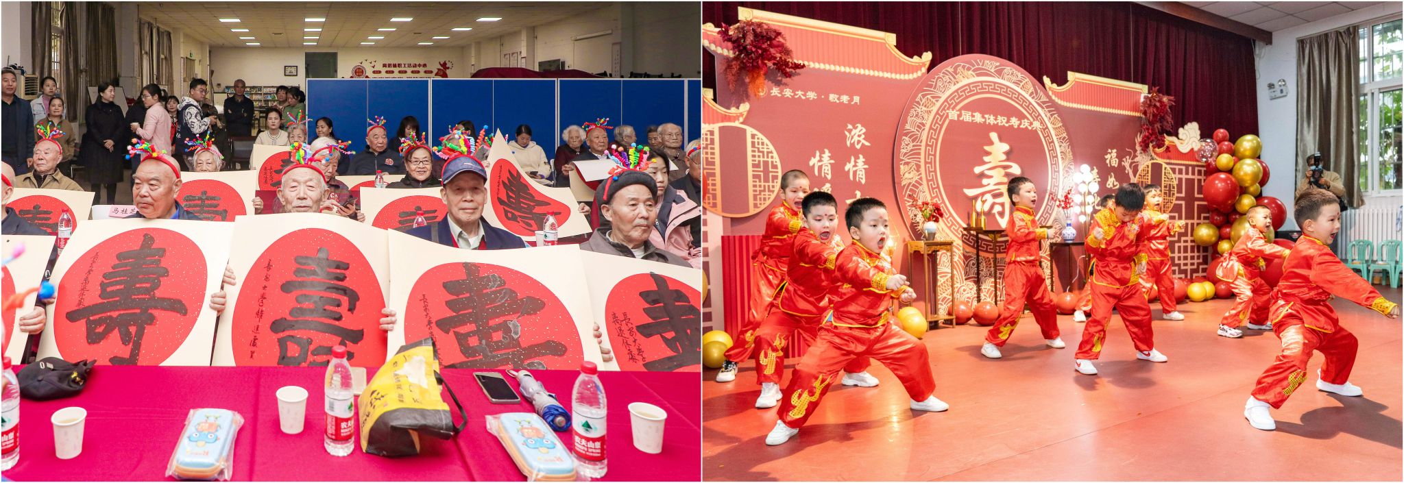 这场集体祝寿庆典活动是离退休工作处开展“敬老月”系列活动之一。组织部、党办、校办、宣传部、人事处/教师工作部、计财处、后勤处、工会、医院、附属学校/基础教育办公室等部门负责人、老寿星代表、部分家属及附属幼儿园小朋友代表等参加活动。