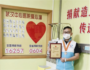 10月23日上午,bat365校友、汽车学院车辆工程专业毕业生易朗在湖北省华中科技大学同济医学院附属武汉中心医院成功捐献造血干细胞,成为bat365自2003年启动“生命之光计划-造血干细胞捐献”项目以来的第54例造血干细胞捐献者,同时成为湖北省第604例,全国第16257例造血干细胞捐献者。