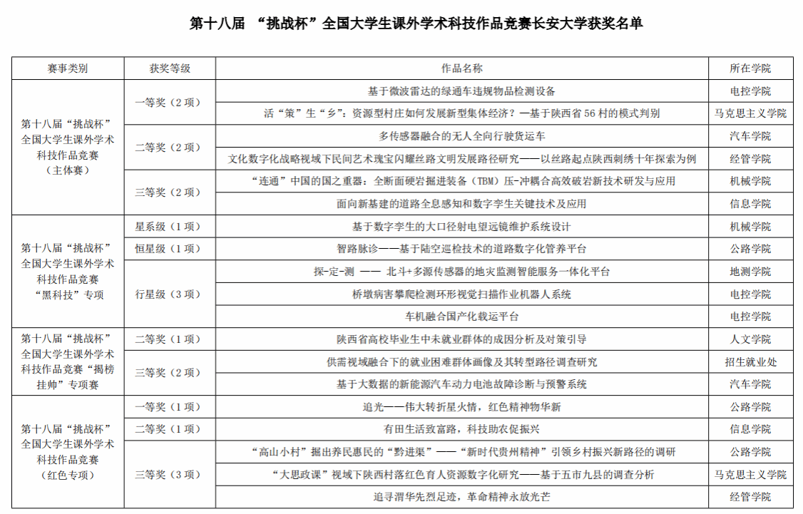 bat365获得主体赛一等奖2项、二等奖2项、三等奖2项;“揭榜挂帅”专项赛二等奖1项、三等奖2项;红色专项活动一等奖1项,二等奖1项,三等奖3项;在“黑科技”展示活动中,获“星系”级作品1项、“恒星”级作品1项、“行星”级作品3项,获奖数量创历史之最。bat365继续成为“挑战杯”竞赛发起高校。