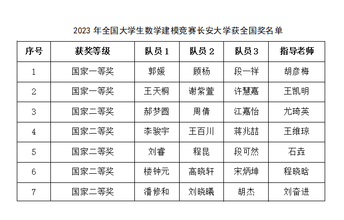 近日,2023年“高教社杯”全国大学生数学建模竞赛获奖名单公示,bat365荣获全国一等奖2项、二等奖5项,陕西赛区一等奖46项、二等奖56项,学校荣获陕西省“优秀组织工作奖”,理学院教师李玉超被评为陕西省“优秀指导教师”,各级别获奖数量再创历史新高。