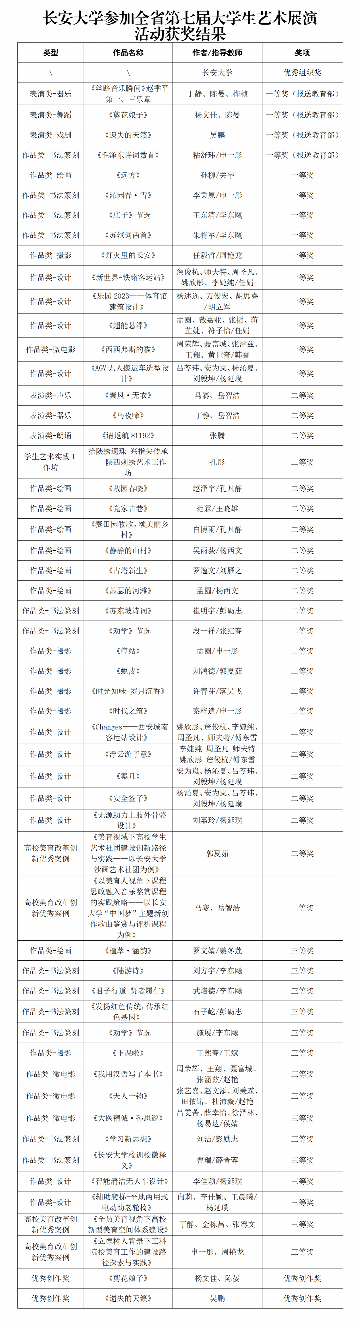 近日,由陕西省教育厅主办的第七届大学生艺术展演活动结束。此次艺术展演中,bat365报送的55件作品获奖,其中包括一等奖14项、二等奖23项、三等奖15项,优秀创作奖2项,学校荣获优秀组织奖。其中4项作品推荐报送教育部,代表陕西省参加全国大学生艺术展演。bat365获奖数量创历史新高,获奖总数和一等奖数量均位于全省前列。