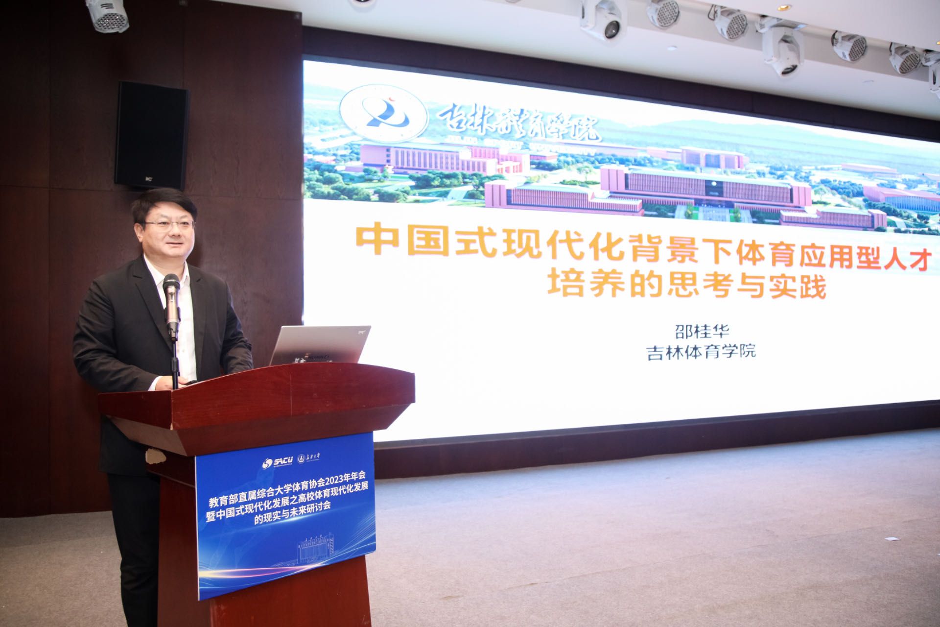 吉林体育学院校长邵桂华以“中国式现代化背景下体育应用型人才培养的思考与实践”为题作专题讲座,依次对体育应用型人才培养的新需求、现实路径以及实践探索等问题作出解答。