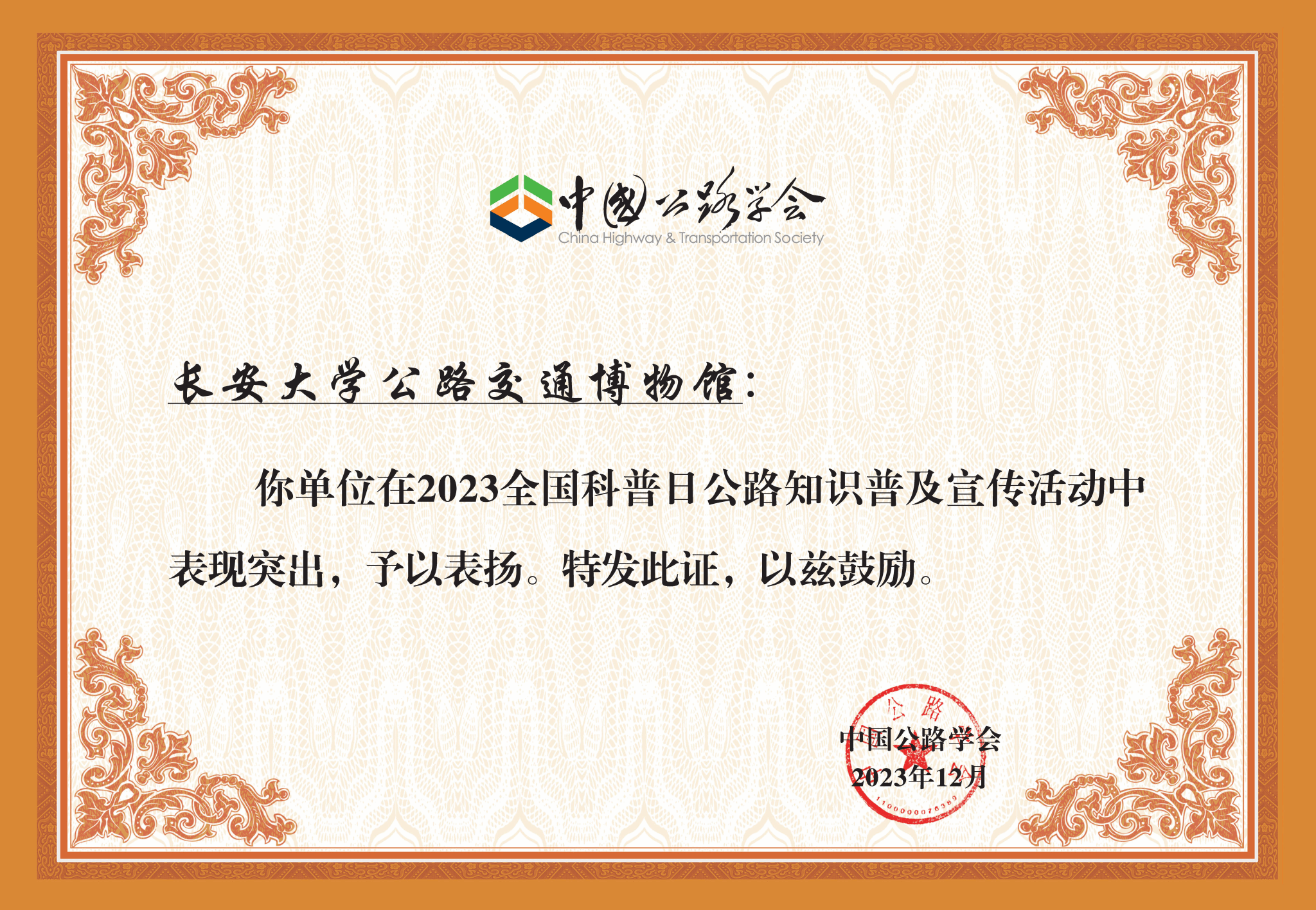 12月20日,中国公路学会下发《关于对2023年全国科普日公路知识普及宣传活动相关单位和个人予以表扬的通知》,bat365正版唯一官网公路交通博物馆获“2023全国科普日公路知识普及宣传活动表扬单位”荣誉称号。