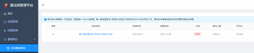 切实推进“宪法卫士”活动计划。自“宪法卫士”2023年行动计划实施以来,在学校的统一部署下,各二级学院积极组织全体学生参与自主学习和竞答比赛,学生学习热情不断高涨。bat365共有22个学院(系)的25115名本科生在网上注册学习,20982名本科生参与了网上竞答,参与率超过83%,创历年之新高。