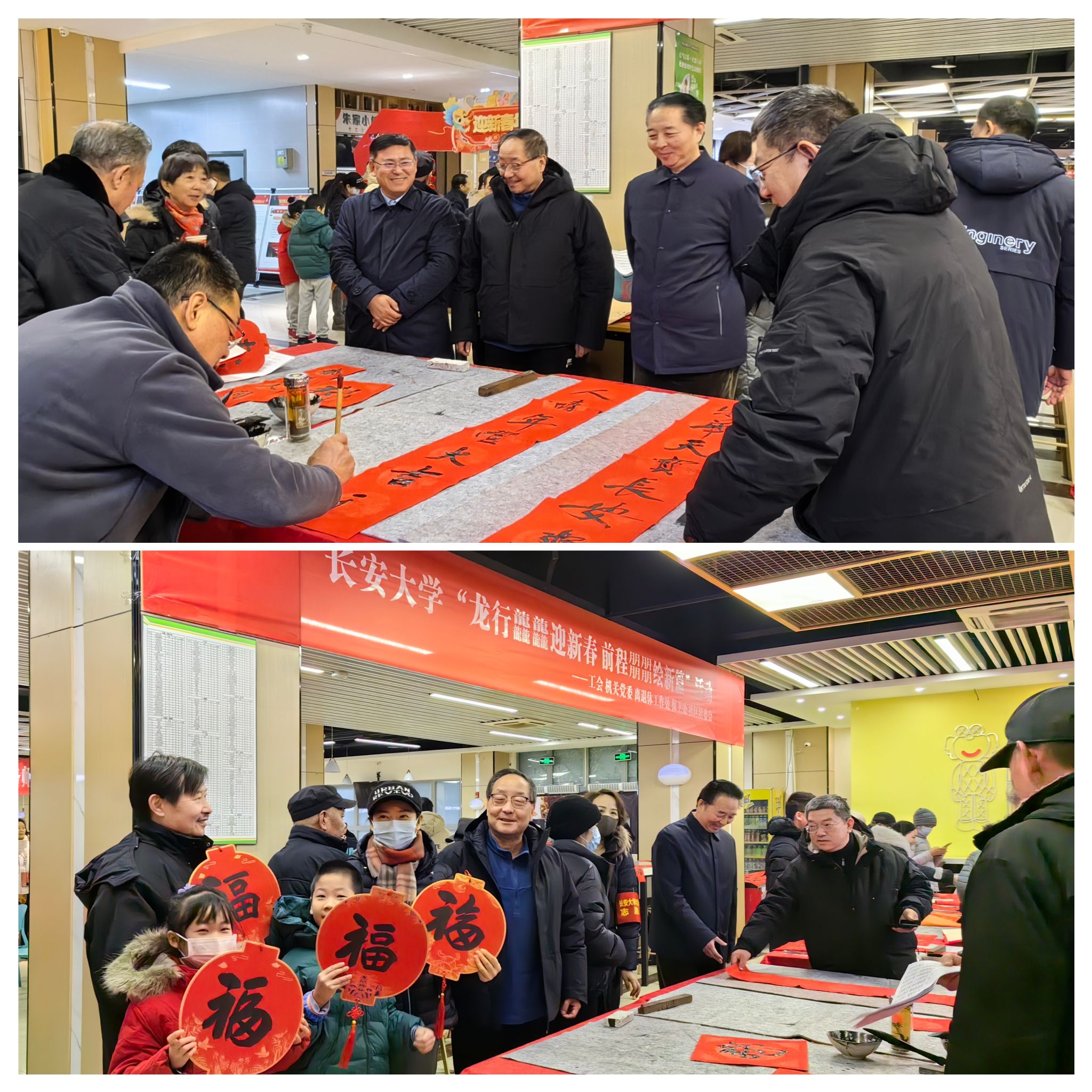 为深入学习贯彻党的二十大精神,弘扬中华优秀传统文化,丰富校园文化生活,营造欢乐祥和平安的节日氛围,2月2日上午,工会、机关党委、离退休工作处、保卫处、社区居委会联合组织开展“龙行龘龘迎新春 前程朤朤绘新篇”活动,校党委副书记徐引正、副校长朱杰君莅临活动现场。