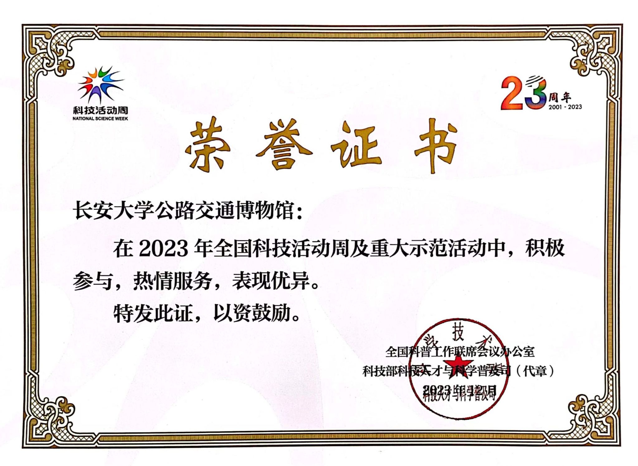 近日,bat365公路交通博物馆由陕西省科学技术厅推荐,获全国科普工作联席会议办公室、科技部科技人才与科学普及司颁发的“2023年全国科技活动周及重大示范活动先进集体”荣誉称号。