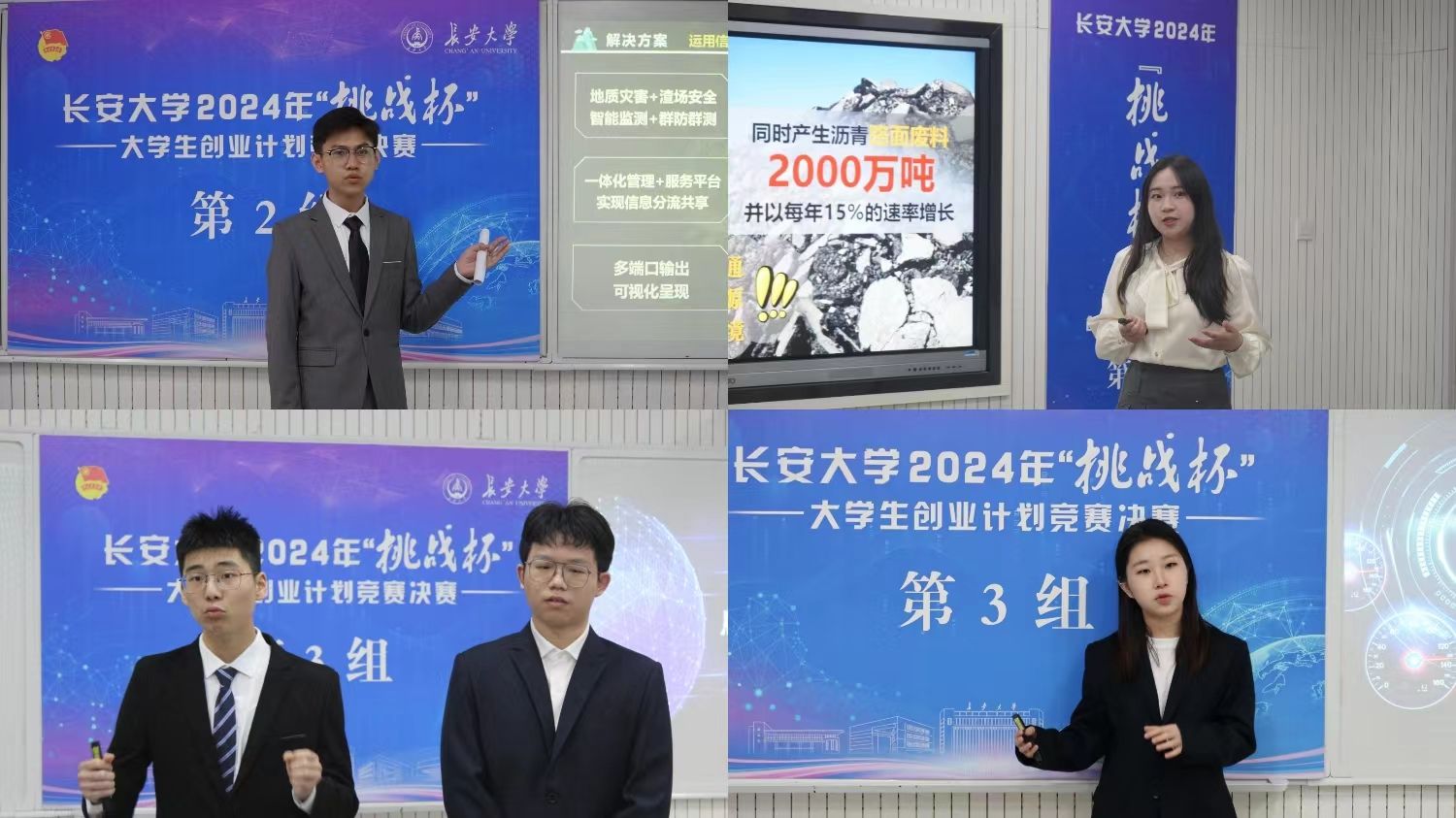 本次决赛采取文本评审与现场答辩相结合的形式,入围决赛的90个参赛团队分为5个小组进行答辩。各参赛团队通过项目文本、实物演示、视频展示和路演答辩等方式,围绕项目背景、痛点分析、产品服务、商业模式、竞争优势、财务分析、发展规划等内容进行陈述。各位评委围绕作品的社会价值、实践过程、创新意义、发展前景和团队协作等方面进行了提问,对项目进一步完善提出了意见建议。