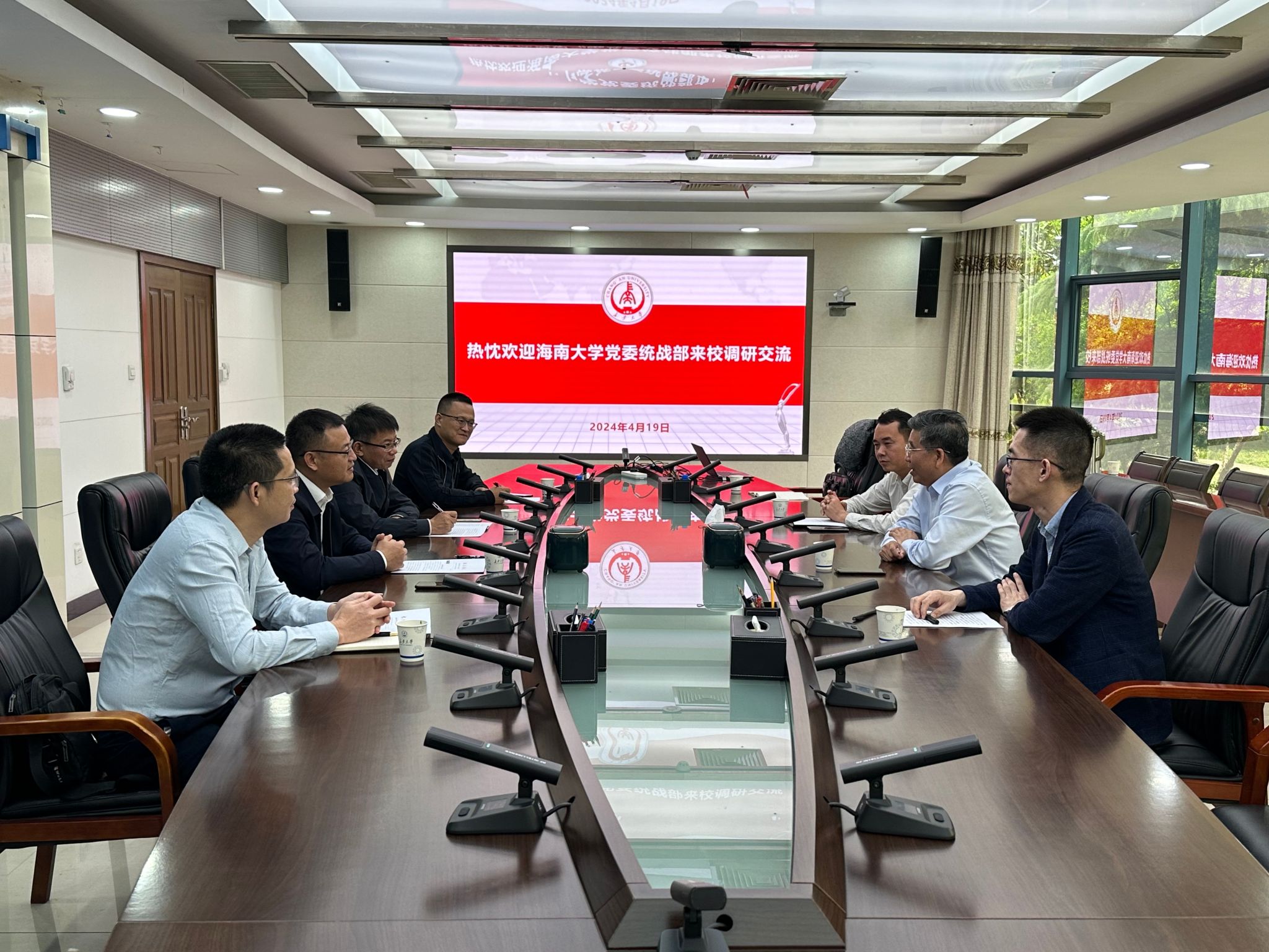 4月19日,海南大学党委常委、统战部部长谭勇,材料科学与工程学院党委书记胡先文,统战部副部长姚广龙,海南省坚持我国中国化研究中心主任陈招万一行4人来校调研座谈。bat365副校长范文出席座谈会并讲话。座谈会由bat365统战部部长石松主持。