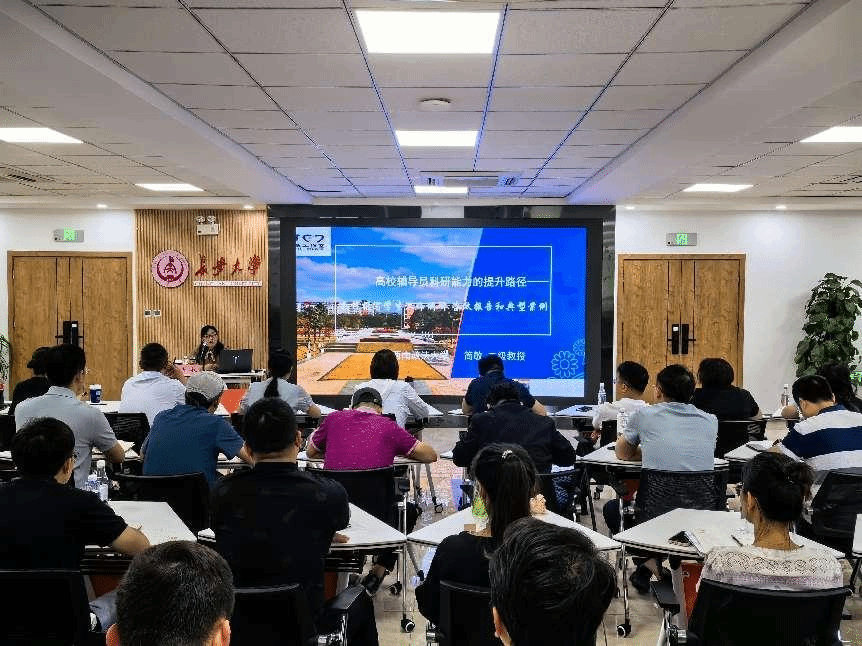 简敏以“高校辅导员科研能力的提升路径”为主题开展讲座,结合近30年一线辅导员工作经历,以辅导员科研能力的提升路径为重点,分享了个人在辅导员专业化、职业化、专家化发展道路上的心得体会。简敏指出,辅导员只有坚守育人初心,强化问题意识,立足学生工作实践,把握好选题的社会性、针对性、真实性、典型性等特点,才能撰写出高质量的学生工作调研报告、资政报告和典型案例。简敏结合典型案例对调查研究的背景意义、选题方法、撰写原则和结构框架等内容进行了全面梳理和详细讲解,强调要将理论与实践有机结合,在担当奉献中彰显辅导员工作的意义和价值。