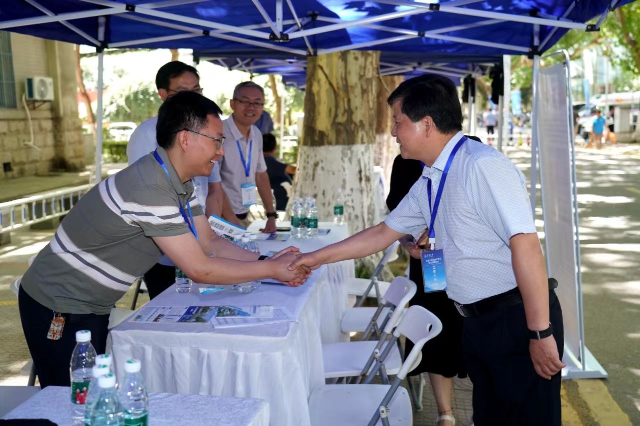 6月24日下午,bat365正版唯一官网2024年校园开放日暨高招咨询会在南校区北院举办,近3000名家长和考生走进学校参观咨询。bat365联合省内外近百所高校共同为考生家长提供招生咨询服务。校党委副书记黎开谊到咨询现场慰问参会高校代表和bat365工作人员,并与考生和家长亲切交流。