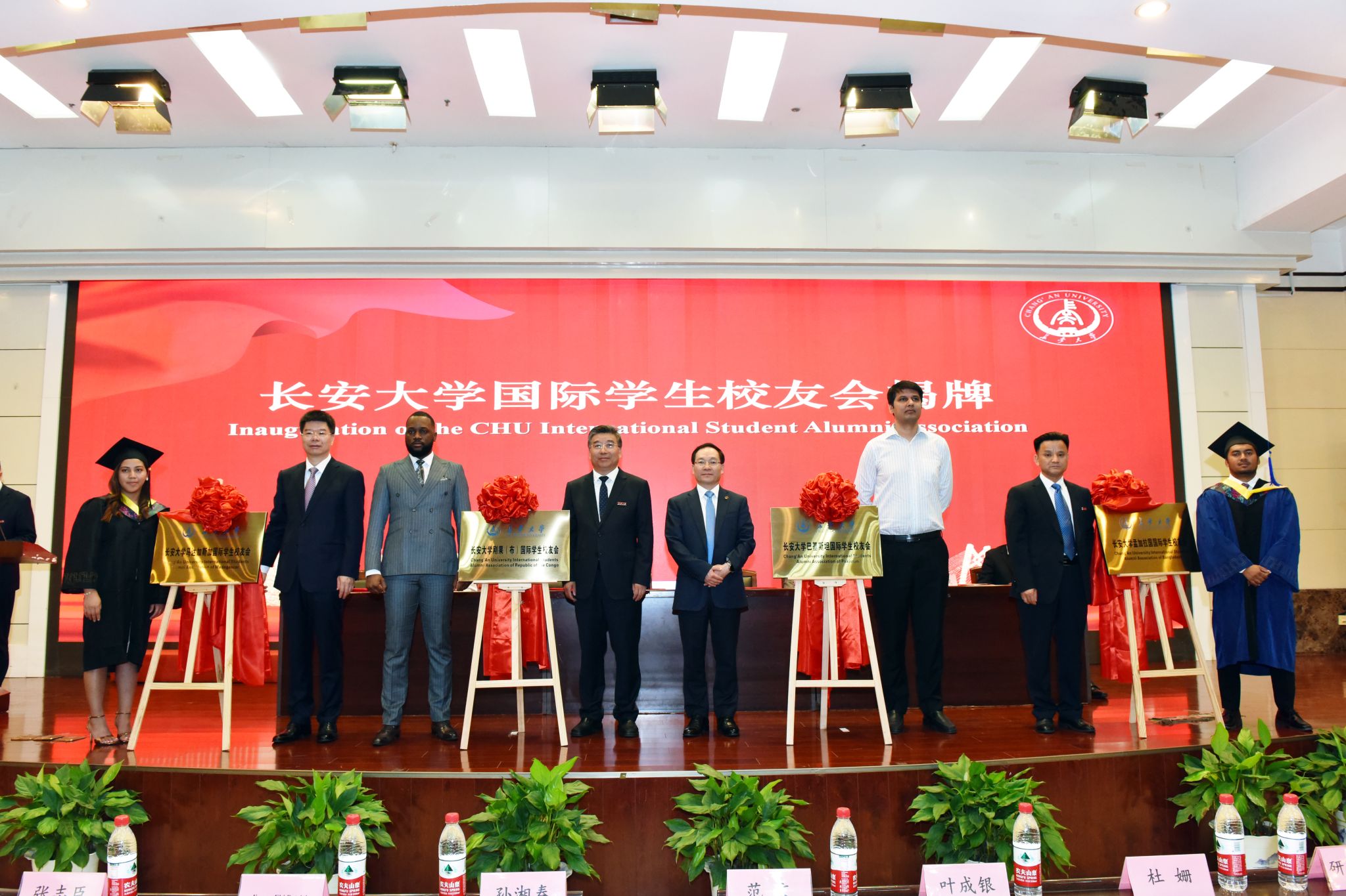 校友会秘书长杨红斌宣读国际学生校友联系人聘任名单和《关于bat365正版唯一官网国际学生马达加斯加、巴基斯坦、刚果(布)和孟加拉校友会成立的决定》。与会领导及校友会代表共同为校友会揭牌。