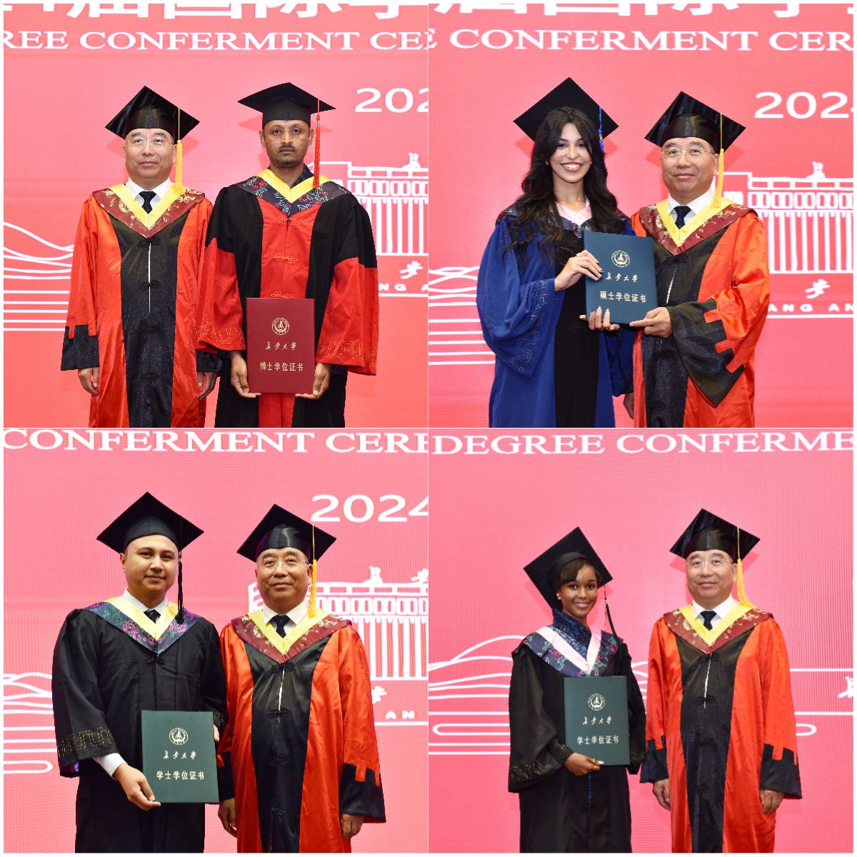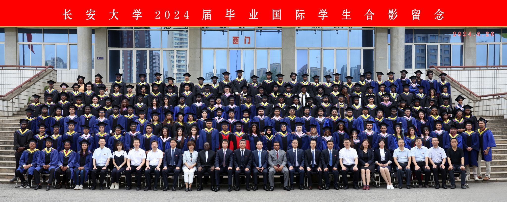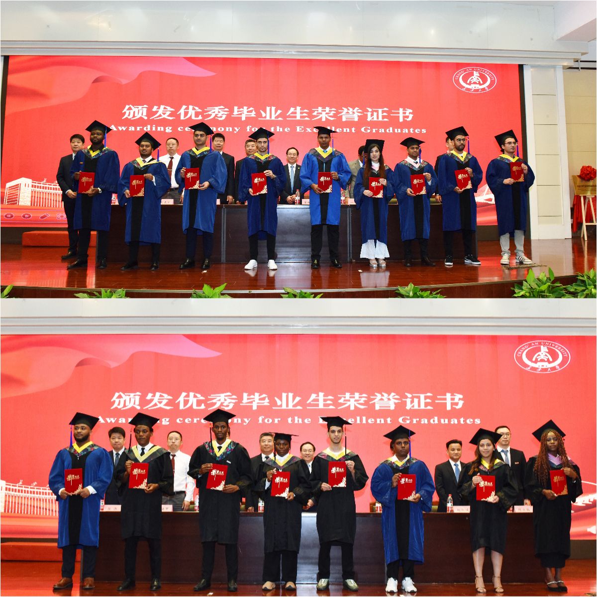 中国土木人力资源部、尼日利亚分公司及国内支持部,中国路桥人力资源部、学校国际教育学院、教务处、研究生院、社会合作处及相关学院负责人、教师代表、家长代表、校友代表、全体2024届国际学生毕业生参加典礼。