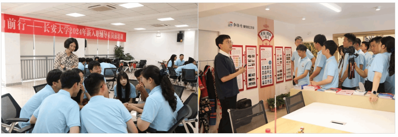 学工部、研工部、教务处、招就处、校团委等相关部门负责人为新入职辅导员开展专题业务培训13场。心理中心教师、副教授,中国心理学会注册督导师贠丽萍为辅导员开展团体辅导,并通过互动游戏让辅导员破冰融心,增强团队信任感、凝聚力和合作精神。辅导员导师带领参训人员到长安文化艺术中心、秦疆情辅导员工作室等思政实践场地参观,并组织开展辅导员读书班和观影活动。