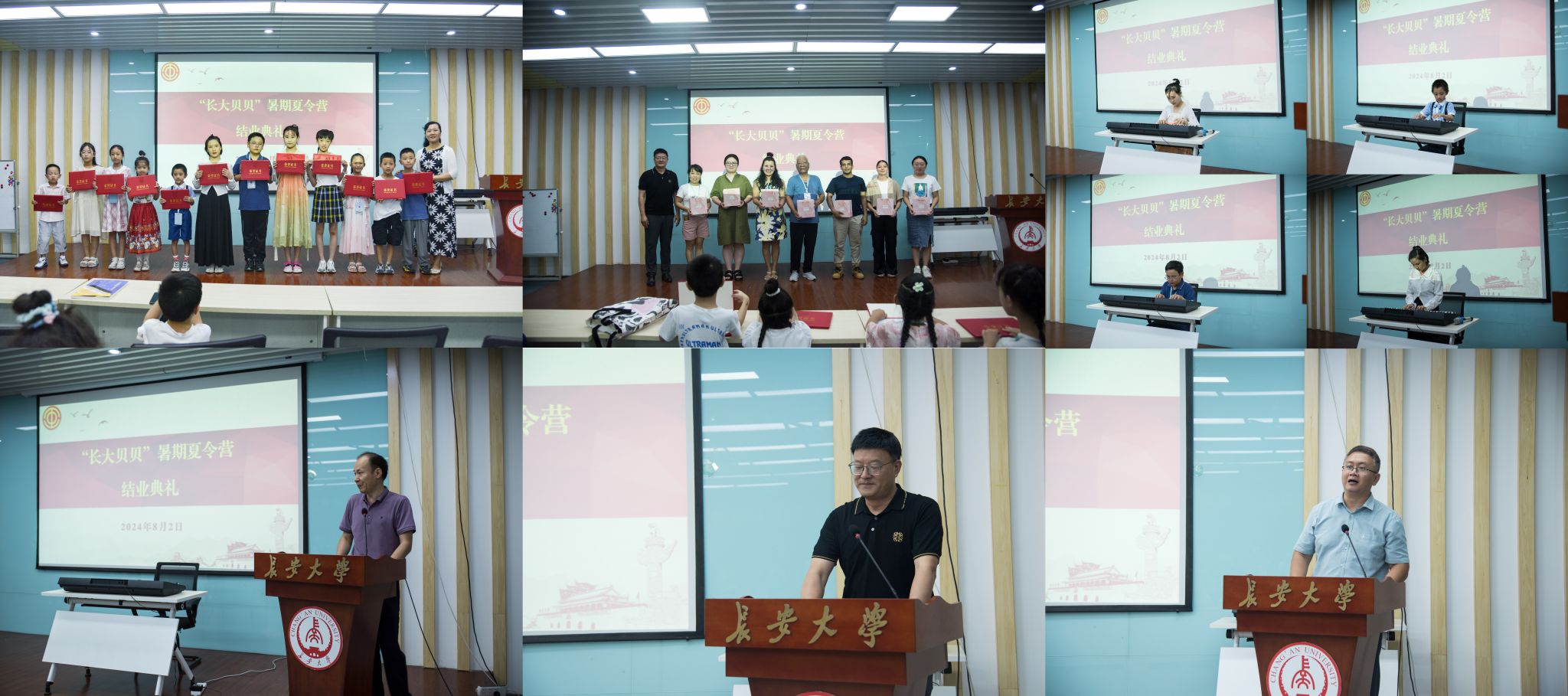 8月2日上午,首期“长大贝贝”教职工子女暑期夏令营结业典礼在南校区东院教学区雁博园第一报告厅举办。