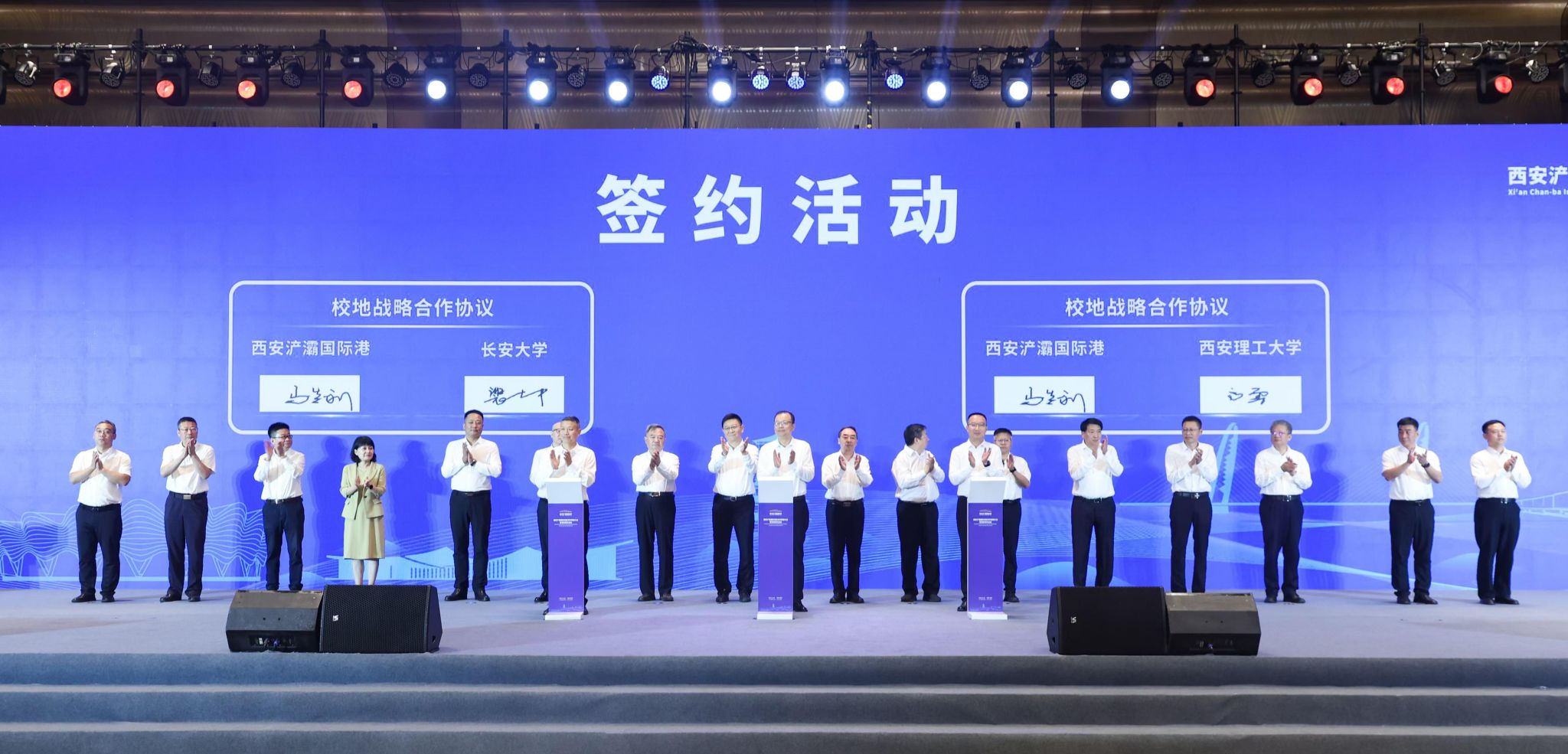 8月28日,西安浐灞国际港投资环境推介会暨项目签约活动在西安国际会议中心举行。西安市委常委、副市长孟浩,陕西省发改委总经济师张茹亚,西安浐灞国际港党工委书记孙艺民,西安浐灞国际港管委会主任杨兵等出席仪式。bat365副校长裴建中参加活动并代表学校签署校地战略合作协议。