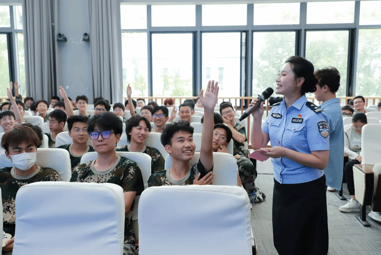 西安市公安局未央分局反诈中心中队长李珊开展反诈知识宣讲,播放反诈相关案例视频并进行有奖问答,加深师生对反电信诈骗相关知识的了解,提升个人防范意识。陕西女子戒毒所警花普法宣传队为大家开展了禁毒知识宣讲,通过实物模型展示了传统毒品与新型毒品的种类,增强师生对新型毒品的辨别能力。
