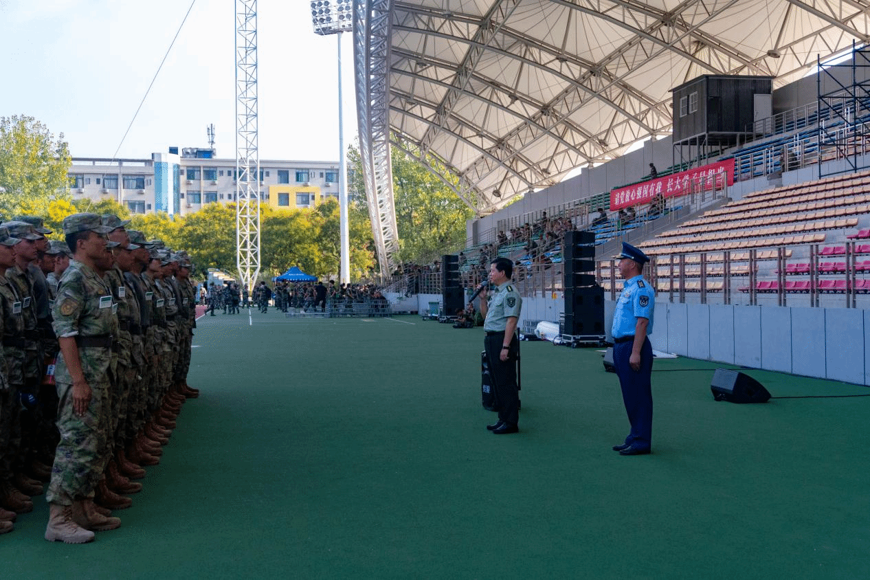 此前,空军工程大学安全管理处处长江勇大校一行来校看望慰问承训教官,指导训练工作。江勇指出,军训是厚植学生家国情怀、锤炼学生意志品质的重要途径;要求承训教官科学安全施训,把握训练强度,圆满完成军训工作。