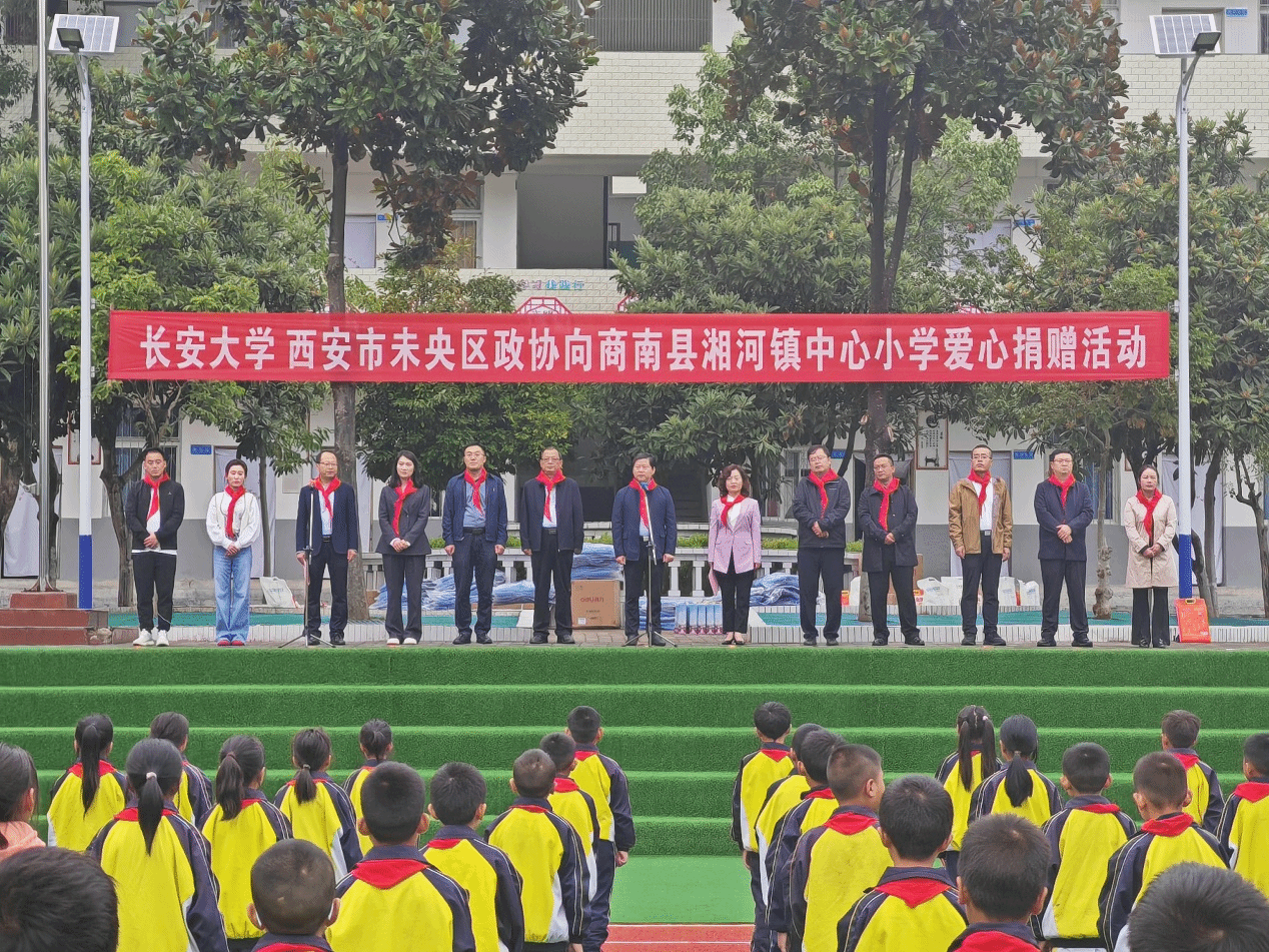 10月12日下午,黎开谊一行参加bat365正版唯一官网、未央区政协向湘河镇中心小学爱心捐赠活动并讲话。