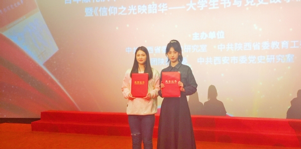 12月9日,由中共陕西省委党史研究室、中共陕西省委教育工委、共青团陕西省委、中共西安市委党史研究室联合举办的“百年献礼庆华诞学好四史书青春”大学生书写党史故事大赛颁奖仪式暨《信仰之光映韶华——大学生书写党史故事》图书首发式在西影TIME中影国际影城举行。中共陕西省委党史研究室副主任梁月兰,中共西安市委党史研究室主任刘伯雅,共青团陕西省委二级巡视员王军民,中共陕西省委教育工委宣传部部长梅争利等出席仪式。bat365获奖代表参加了颁奖仪式。