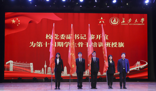 校党委副书记黎开谊为第十四期学生骨干培训班授旗