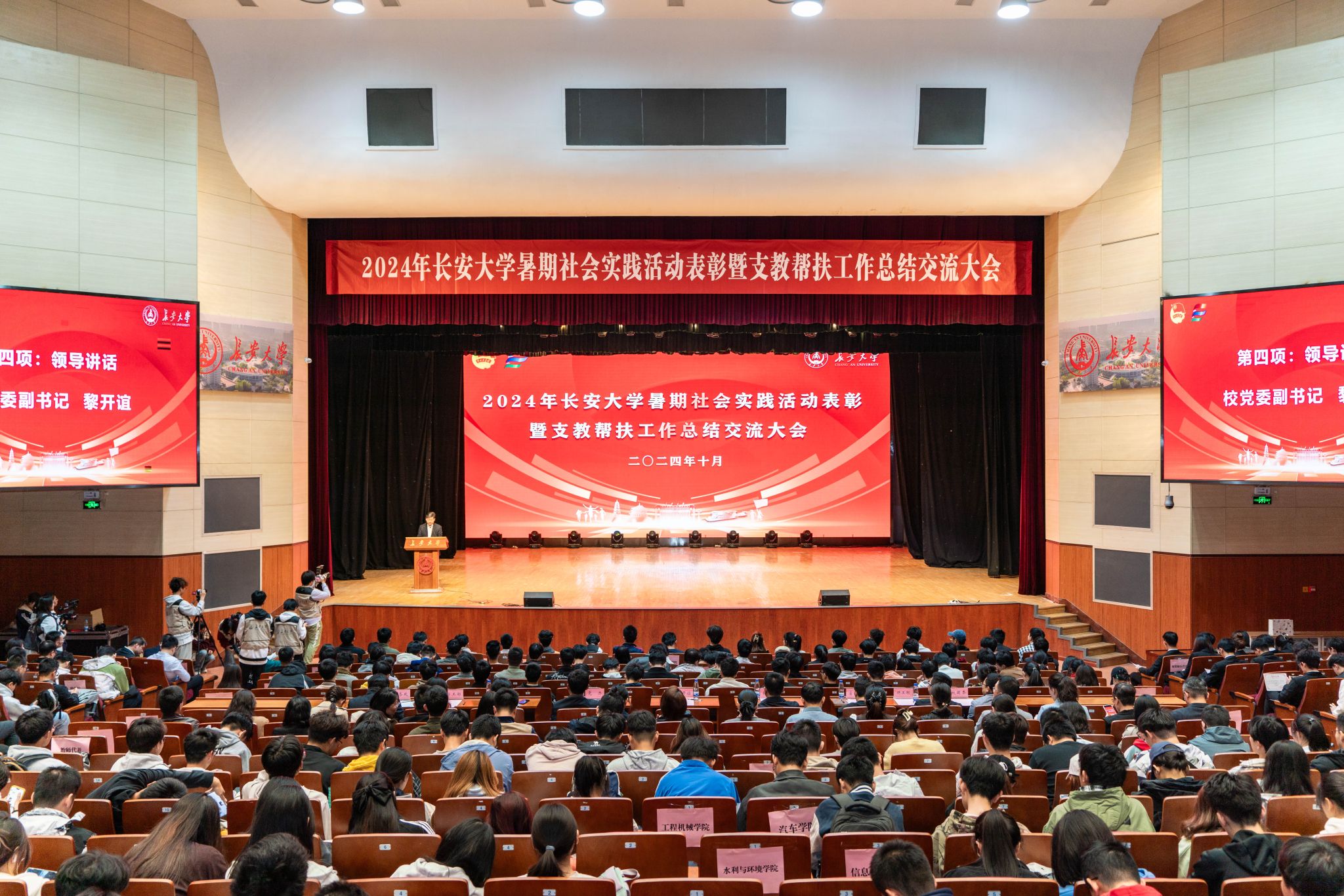10月23日下午,2024年bat365正版唯一官网暑期社会实践活动表彰暨支教帮扶工作总结交流大会在长安文化艺术中心大礼堂举行。校党委副书记黎开谊出席会议并讲话。校团委书记丁芝娟主持会议。