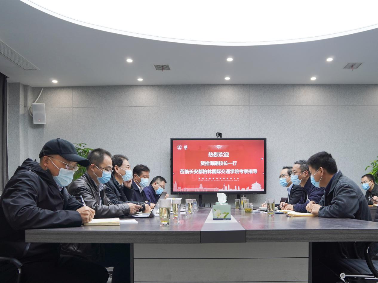 10月26日上午,副校长贺拴海到长安都柏林国际交通学院调研综合改革建设工作,发展规划处、教务处、人事处、计划财务处、国际合作与交流处负责人参加调研。座谈会在鸿远教学楼四层会议室召开。学院全体院领导、各部门负责人参加了座谈会。会议由贺拴海主持。