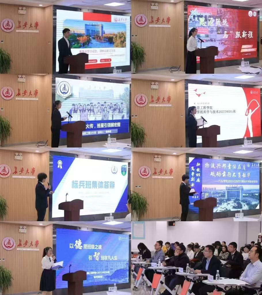 会上,各班集体负责人围绕“团结奋进 学风为先 特色发展”的建设思路和“1+1+X”的建设要求,展示了班级在理想信念教育、集体主义教育、学风建设和德智体美劳全面发展等方面的建设举措与取得成效,涌现出了多个课程通过率、英语四级考试通过率、体测通过率100%的班级,展现了团结、向上、温馨、和谐的班风班貌。答辩中,各位评委同答辩人围绕学风建设、朋辈学业帮扶、校园文化活动开展、班级凝聚力提升等内容进行了互动交流。