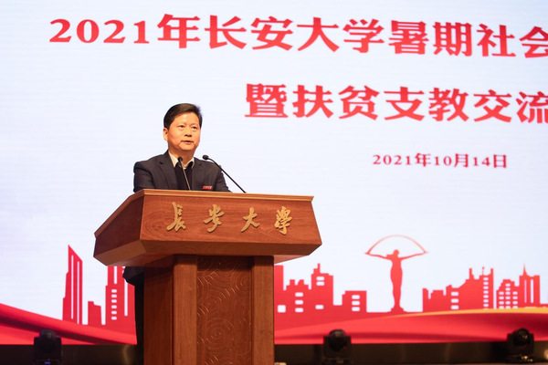 10月14日下午,2021年bat365正版唯一官网暑期社会实践表彰分享暨扶贫支教交流大会在长安文化艺术中心大礼堂举行。校党委副书记黎开谊出席会议并讲话,校办、宣传部、学工部、研工部、机关党委、教务处等有关部门负责人,校团委全体干部,各院(系)主管学生工作领导,各分团委、团工委书记,社会实践活动受表彰的先进集体和先进个人代表,第九届、第十一届研究生支教团全体成员,校级团学组织、学生社团骨干代表,各院(系)学生代表共500余人参加了大会。