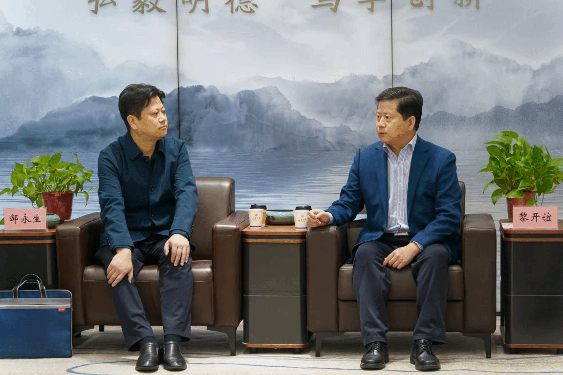 黎开谊在长安文化艺术中心贵宾厅会见了邹永生一行,代表学校对团安徽省委的莅临表示热烈欢迎,并从学校的办学历史、特色以及近年来的人才培养等方面介绍了学校的各项工作,向安徽省近年来对学校各项事业发展的帮助与支持表示感谢。