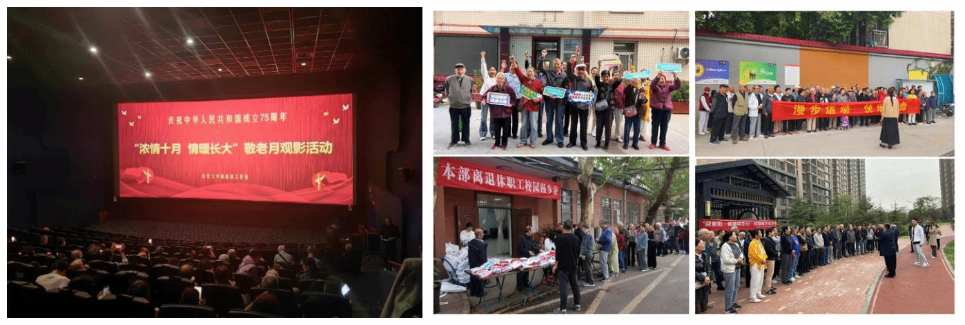 浓情十月暖长大,适老惠老特色浓。举办“浓情十月情暖长大”第二届离退休职工集体祝寿庆典活动,为今年80周岁、90周岁和95周岁及以上的104名离退休职工集体祝寿,弘扬孝亲敬老的传统美德,营造敬老爱老助老的良好氛围;组织70余名老同志前往西安康馨园与圣远和园颐养中心参观考察,实地了解康养领域的发展情况,进一步丰富老同志精神文化生活和养老服务选择;组织老同志们赴比亚迪草堂工业园区开展“创新发展筑强国梦追赶超越逐新征程”实地研学活动,深切感悟加快发展新质生产力的重要作用和深远影响;赴陕西省家风馆开展“学党史党纪传承优良家风”最美家风进校园活动,加强家庭家教家风建设,实施优秀家风文化育人。