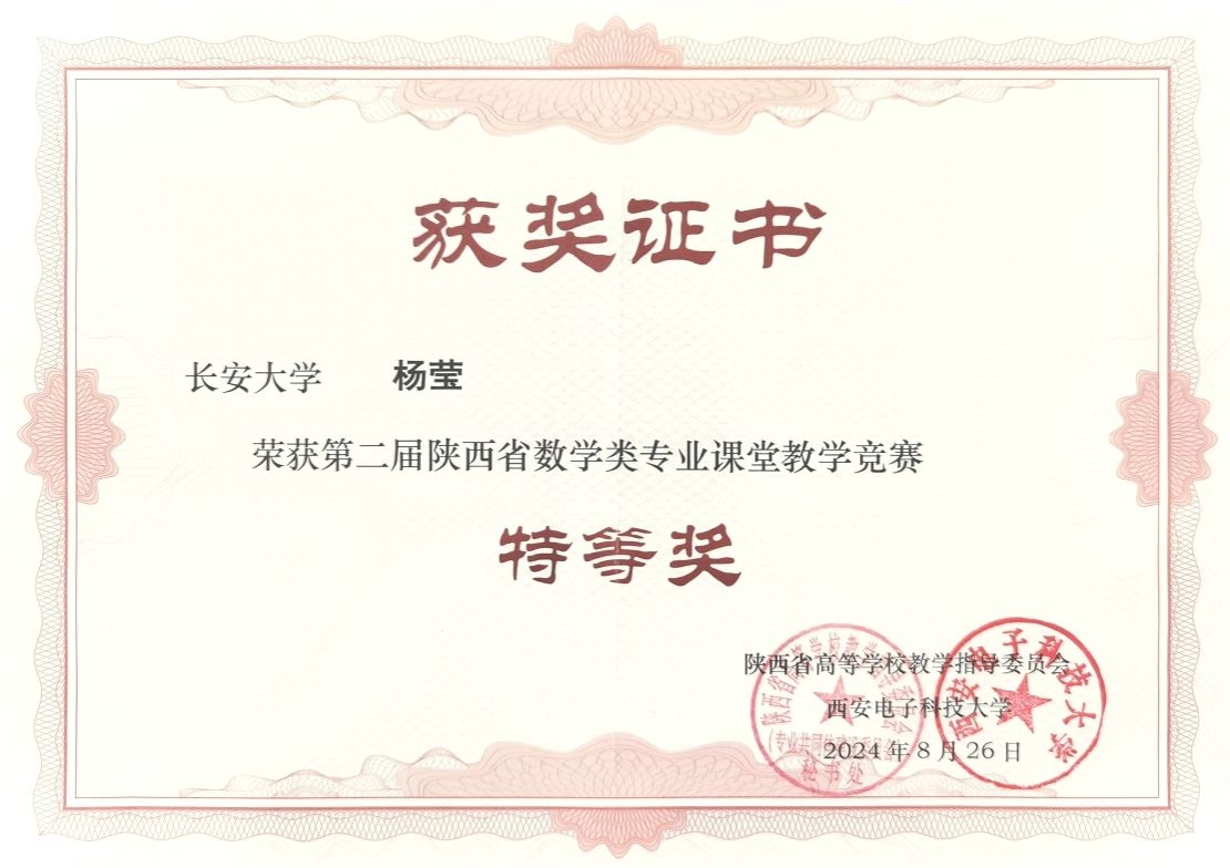 近日,第二届陕西省高校数学类专业课堂教学竞赛颁奖仪式在西安电子科技大学北校区举行,bat365理学院青年教师杨莹、李玉超在众多参赛选手中脱颖而出,分获特等奖和一等奖。杨莹作为获奖代表,受邀在颁奖仪式上进行《曲面的面积》的教学示范公开课展示。