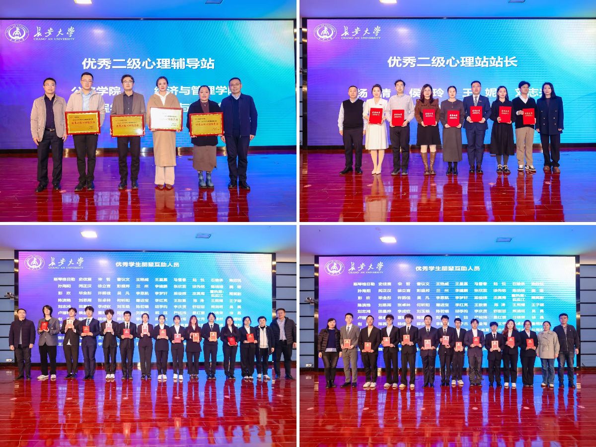在心理育人工作表彰中,公路学院、经济与管理学院、建筑工程学院、水利与环境学院荣获“优秀心理辅导站”,杨倩、侯玲、王妮、刘志兴、许必颖、郭执玺、陈子毅荣获“优秀心理辅导站站长”,斯琴格日勒等100名学生荣获“优秀学生朋辈互助人员”。
