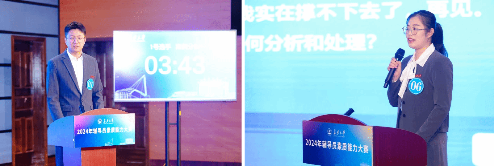 2024年辅导员素质能力提升训练营历时两个月,包括辅导员素质能力考核和辅导员素质能力大赛两部分。在辅导员素质能力考核的我认我生、基础知识测试、思政公开课、教育典型案例、学生满意度测评等环节中,成绩优秀的20名选手进入辅导员素质能力大赛。大赛分为谈心谈话和案例分析,经过谈心谈话环节的激烈角逐,最终10名选手进入决赛案例分析环节。