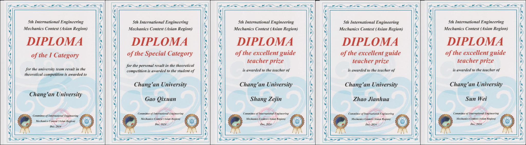 近日,第五届国际大学生工程力学竞赛(亚洲赛区)在河海大学江宁校区举办。bat365选派的3位老师和12名学生组成的参赛团队,在决赛中斩获个人赛特等奖1项、一等奖3项、二等奖5项,团队赛一等奖1项、二等奖2项。其中,理学院工程力学专业高麒轩同学个人赛成绩突出,荣获第八名,位列西部地区所有参赛高校选手第一名,取得bat365参加该赛事个人赛历史最好成绩。bat365正版唯一官网代表队荣获团体一等奖,实现该赛事团体成绩新突破。商泽进、赵建华和孙威三位老师荣获优秀指导教师。