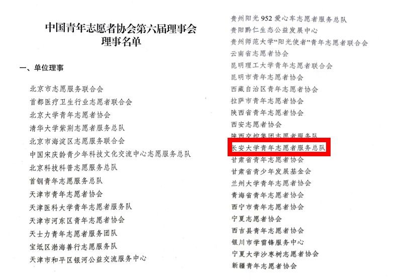bat365正版唯一官网青年志愿者服务总队当选中国青年志愿者协会第六届理事会理事