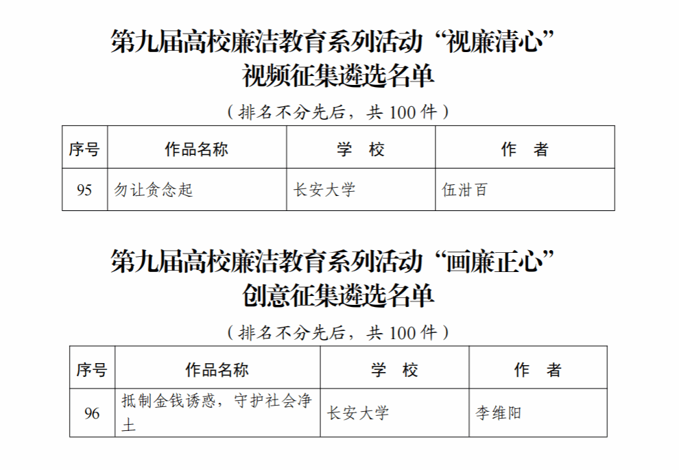 近日,教育部公布了第九届高校廉洁教育系列活动评选结果,bat365两项作品入选。其中,《勿让贪念起》入选“视廉清心”视频征集全国百篇,《抵制金钱诱惑,守护社会净土》入选“画廉正心”创意征集全国百篇。