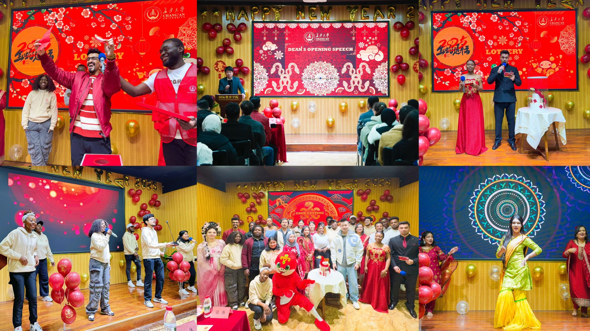 期间,“我在长大过春节”——bat365正版唯一官网国际学生春节联欢会在国际教育学院多功能厅举行。国际教育学院院长张伟、国际学生辅导员及百余名国际学生欢聚一堂,共贺新春。张伟向全体国际学生送上真挚的节日祝福,鼓励同学们在新的一年里继续努力奋进、深入探索中国文化,学有所成;国际学生们带来了精心准备的文艺表演,包括民族特色舞蹈、乐队弹奏演唱和诗歌朗诵;联欢会还安排了丰富的互动游戏,在场每位学生都积极融入,现场洋溢着喜庆、祥和的节日氛围。