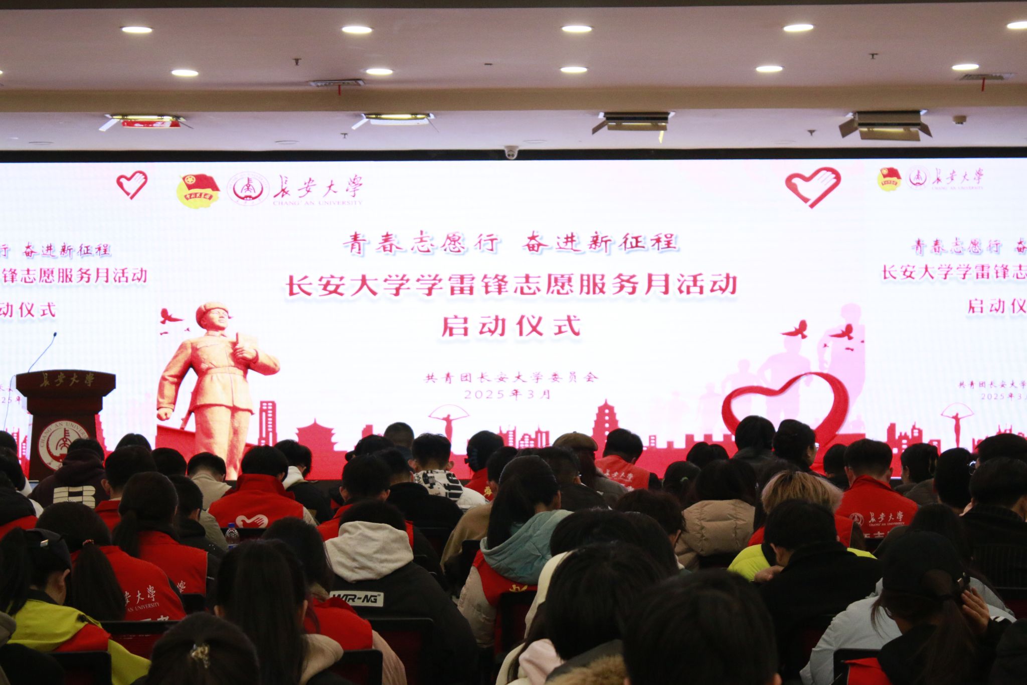 3月4日晚,2025年bat365正版唯一官网“学雷锋志愿服务月”启动仪式在长安文化艺术中心三层多功能厅举行。校团委相关干部,各学院(系)青年志愿者服务队指导教师及负责人,bat365青年志愿者服务总队全体成员,志愿公益类学生社团负责人及优秀志愿者代表共300余人参加活动。