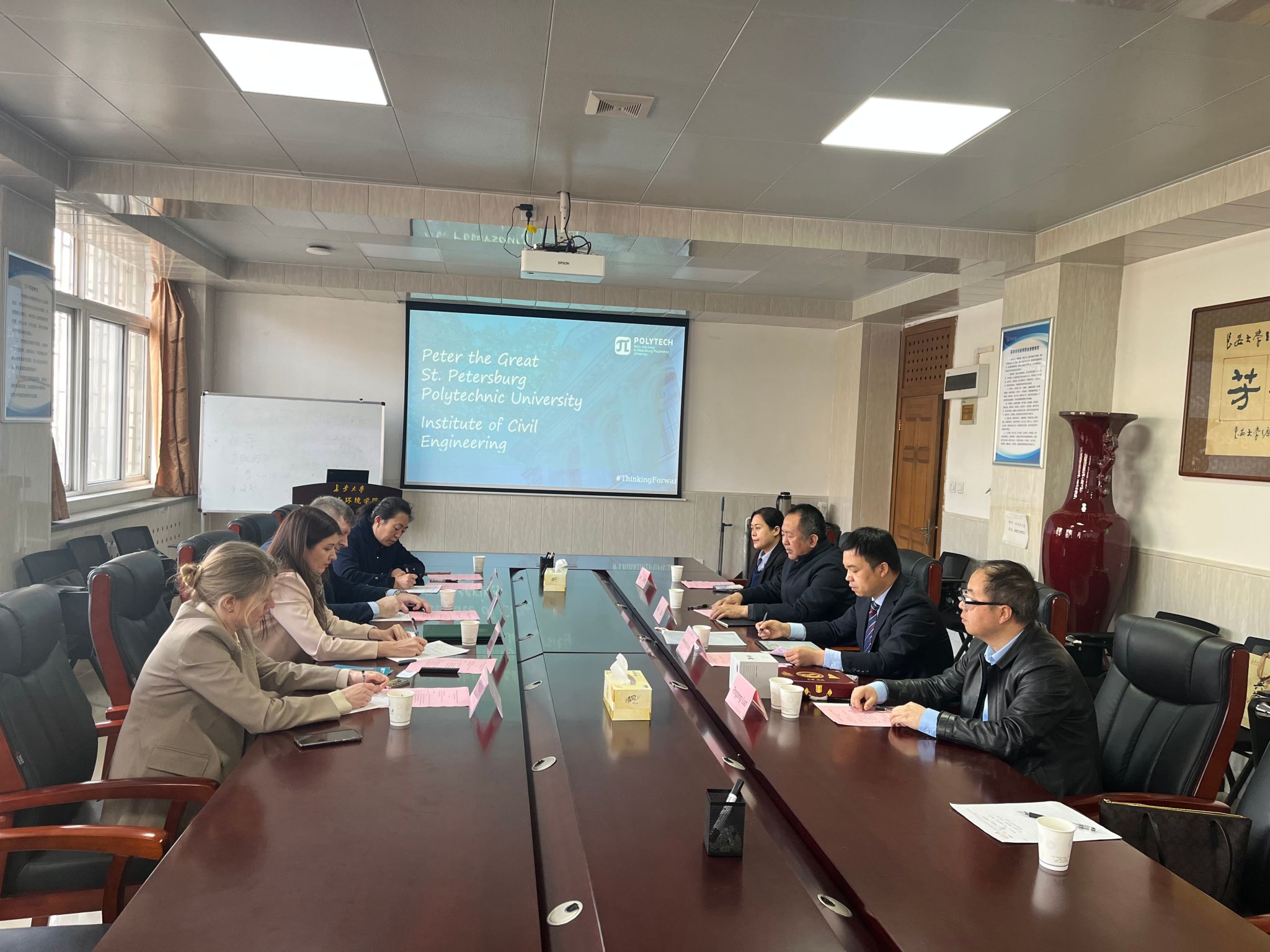 3月18日,俄罗斯圣彼得堡彼得大帝理工大学院长Petrochenko Marina,副院长Romanov Mikhail 、Strelets Kseniia一行应邀来bat365进行合作交流活动。bat365国际合作与交流处、水利与环境学院相关负责人和教师代表与俄罗斯代表团进行座谈。