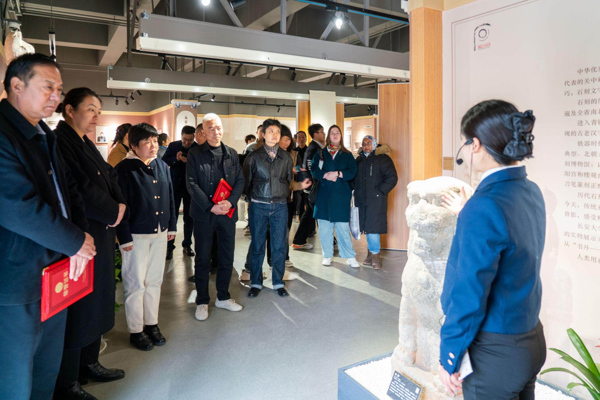 仪式结束后,嘉宾和师生们在学生讲解员的引导下,一同参观了石刻艺术馆。现场还开展了拓片、刻字等学生实践活动,学生们现场体验了传统碑刻的艺术魅力。