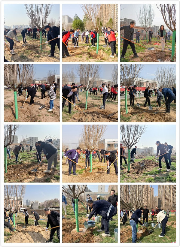 活动开始后,大家纷纷拿起铁锹,填土夯苗、围堰踩实、提桶浇水,分工协作,热情似火。在大家的欢笑声中,一排排挺拔的樱花树屹立起来。